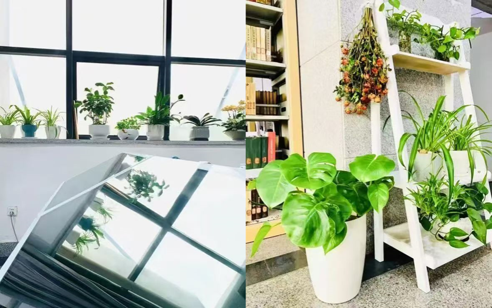 活动启动后,各科室与楼层积极响应,工作人员充分发挥创意,将绿萝、多肉、文竹等绿植与书架布局、窗台景致巧妙融合。三楼“书香绿韵角”的藤蔓沿书架蜿蜒而下,与书籍相映成趣;七楼窗台以错落有致的小盆栽组合,打造出精致“微景观”;一楼阅览区则在书桌摆放小型盆栽,让读者在翻阅书页时邂逅一抹清新绿意。