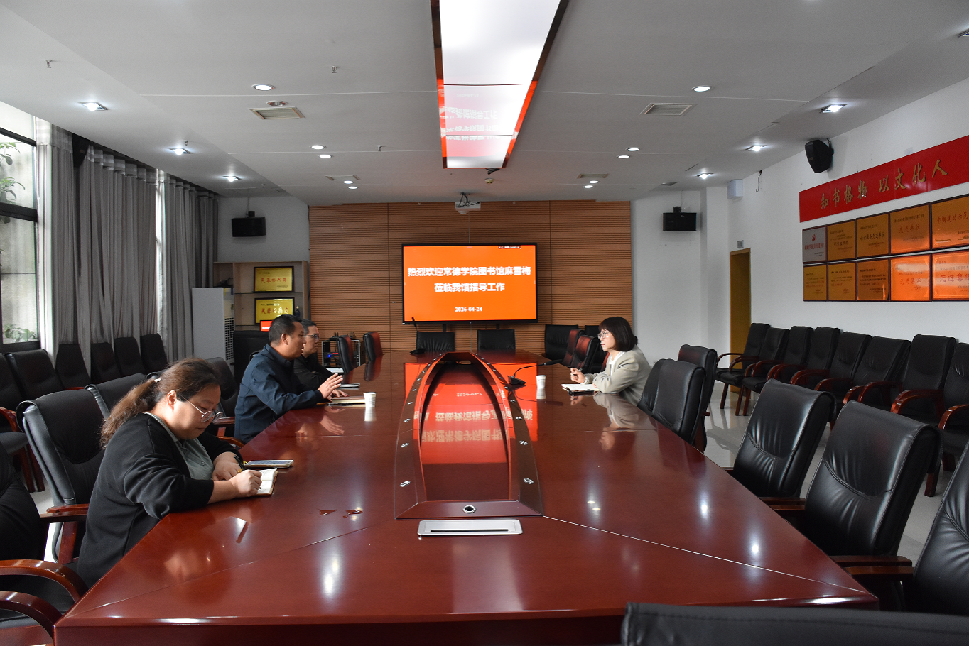 本网讯(通讯员黄伟)为进一步加强馆际交流与合作,提升图书馆管理与服务水平,4月24日下午,常德学院图书馆馆长麻雪梅莅临我馆指导工作。图书馆馆长莫连光、副馆长吴湘华热情接待,并全程陪同实地考察。